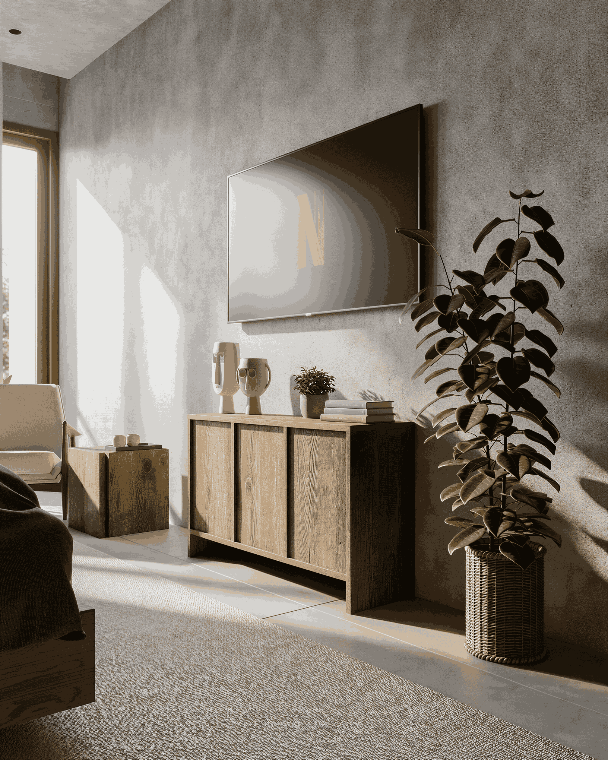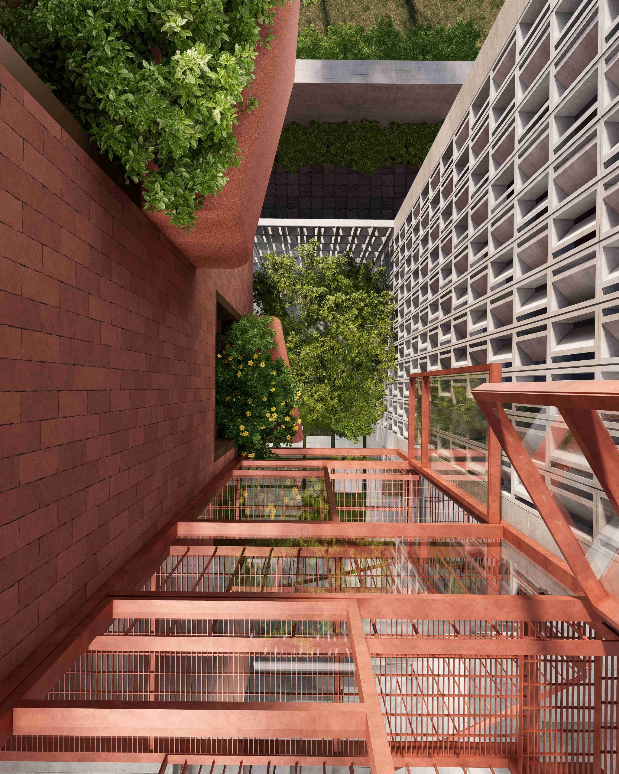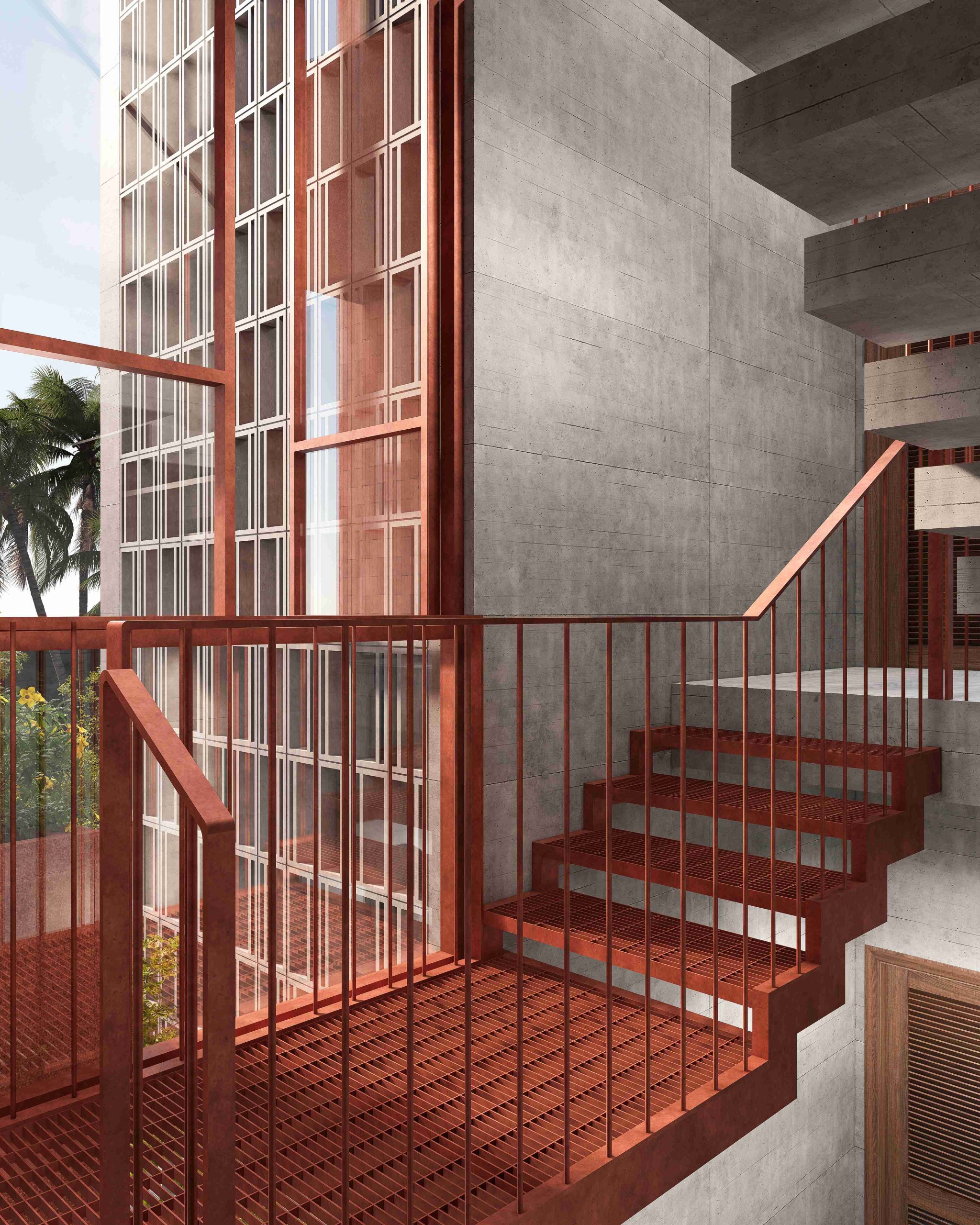 The homestay features a tropical modern style, highlighted by lush greenery across balconies and façades. Simple volumes combined with warm materials create a cozy, relaxing atmosphere, offering an airy stay that connects closely with nature.